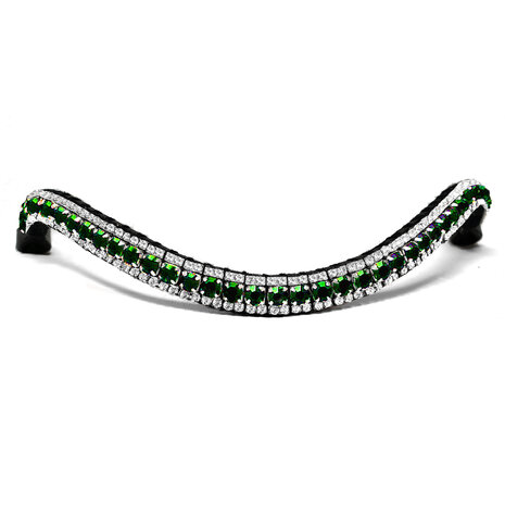 De frontriem Crystal & Emerald - Subtile is gemaakt van 3 rijen crystal en Emerald stenen dit is een fantastische donker groene kleur. In het midden zit een rij grote emerald stenen en daar omheen zitten 2 rijen kleine crystal stenen.