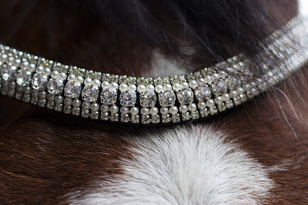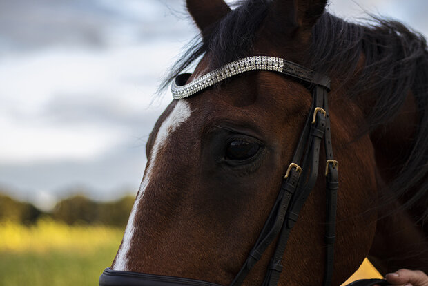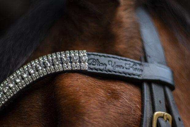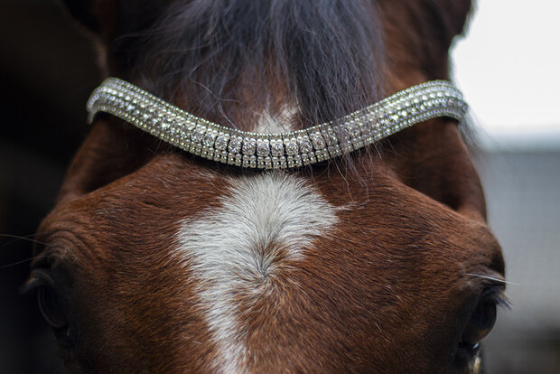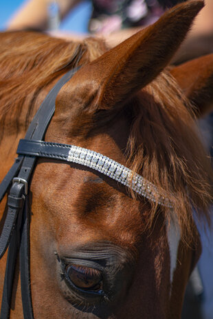 De kristallen van een Bling frontriem worden met extra dik garen meerdere malen bevestigd aan een leren basis frontriem in zwart-, bruin- of cognackleurig leer. Door de extra stevige bevestiging is de frontriem geschikt voor gebruik bij het uitoefenen van uw paardensport. Bekijk de maattabel met ook meer informatie over hoe je jouw frontriem kan opmeten. Meer informatie over de verschillende type lussen vindt u op deze pagina
