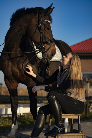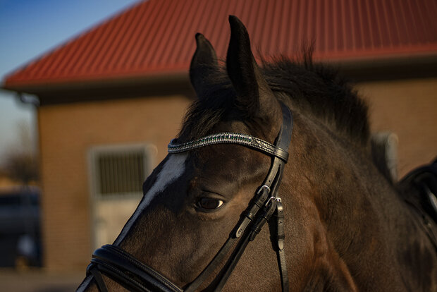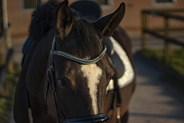 Met een Bling frontriem laat je niet alleen iedereen naar je staren, maar je gaat er zelf ook van stralen! Door de extra stevige bevestiging is de frontriem geschikt voor gebruik bij het uitoefenen iedere paardensport. Of je nu een dressuurruiter, springruiter, menner of een recreatieruiter bent. Doordat de frontriemen handgemaakt zijn, zijn er vele varianten mogelijk. Heb je een zwart, bruin of cognac kleur hoofdstel, heb je een normale, kleine of dubbele lus nodig? Het is allemaal mogelijk!