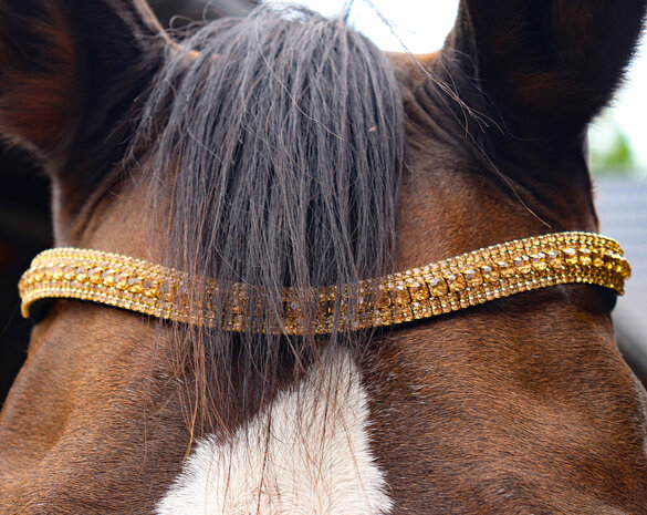 De kristallen van een Bling frontriem worden met extra dik garen meerdere malen bevestigd aan een leren basis frontriem in zwart-, bruin- of cognackleurig leer. Door de extra stevige bevestiging is de frontriem geschikt voor gebruik bij het uitoefenen van uw paardensport. Bekijk de maattabel met ook meer informatie over hoe je jouw frontriem kan opmeten. Meer informatie over de verschillende type lussen vindt u op deze pagina