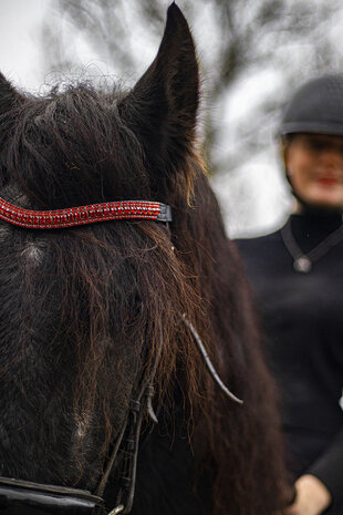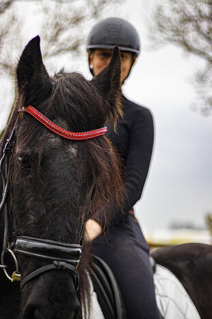 De kristallen van een Bling frontriem worden met extra dik garen meerdere malen bevestigd aan een leren basis frontriem in zwart-, bruin- of cognackleurig leer. Door de extra stevige bevestiging is de frontriem geschikt voor gebruik bij het uitoefenen van uw paardensport. Bekijk de maattabel met ook meer informatie over hoe je jouw frontriem kan opmeten. Meer informatie over de verschillende type lussen vindt u op deze pagina