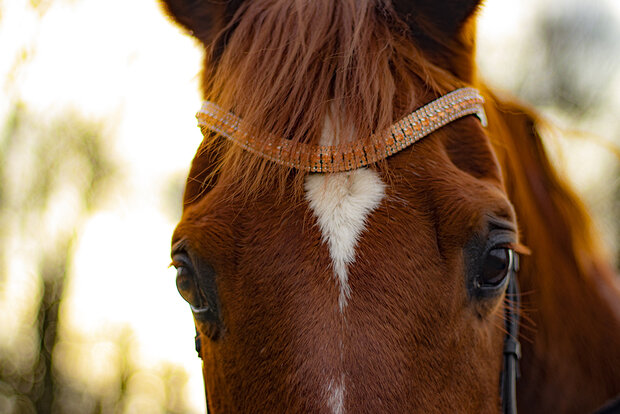Verras jouw pony of paard met een schitterde Bling frontriem en laat hem stralen in de piste!