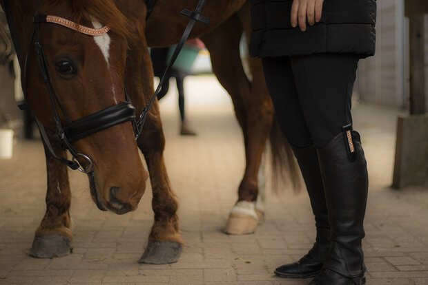Het leer voor de frontriemen wordt zorgvuldig voor jou uitgezocht. De frontriemen zijn gemaakt van topnerfleer. Dit leer wordt geschuurd en geslepen en door dit proces ontstaat er een gladder leersoort. Hierdoor is het leer minder kwetsbaar voor vlekken en makkelijk te onderhouden. Ideaal voor onze paarden die altijd alles vies maken! Het leren halster is verkrijgbaar in zwart, bruin en cognac kleurig leer.