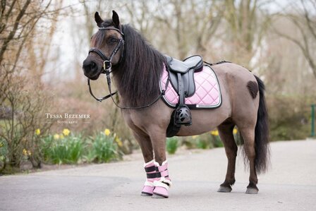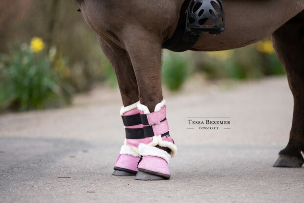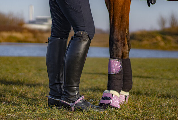 Springschoenen voorkomen dat het paard zichzelf verwondt door op de verzenen of op de achterkant van de ballen van de hoef te trappen.
